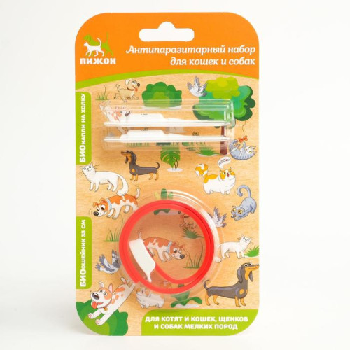 Антипаразитарный набор "Пижон" для кошек и собак (ошейник 35 см + биокапли 2х1 мл)