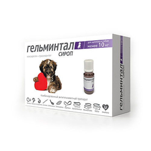 Гельминтал сироп для щенков и собак менее 10кг 10мл (1мл на 2кг)*35