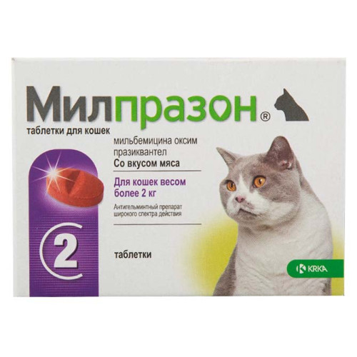 Милпразон для кошек более 2кг 2 таблетки (1 таблетка/4-8кг)