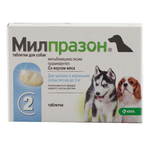Милпразон для собак и щенков до 5кг 2 таблетки (1таблетка/1-5 кг)