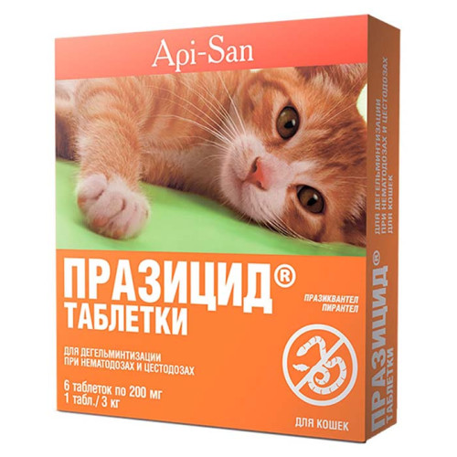 Празицид для кошек 6*200мг таблеток (1таблетка/3кг)*10