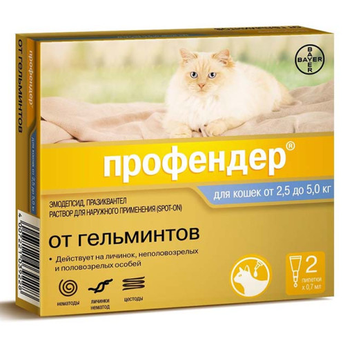 Профендер 2,5-5 кг (в упаковке 2 пипетки) (от гельминтов)