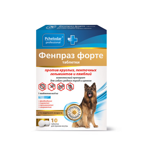 Фенпраз Форте для ср.собак и щенков против круг. и ленточн. гельм-в, 10таб (1таб. на 8кг) *50