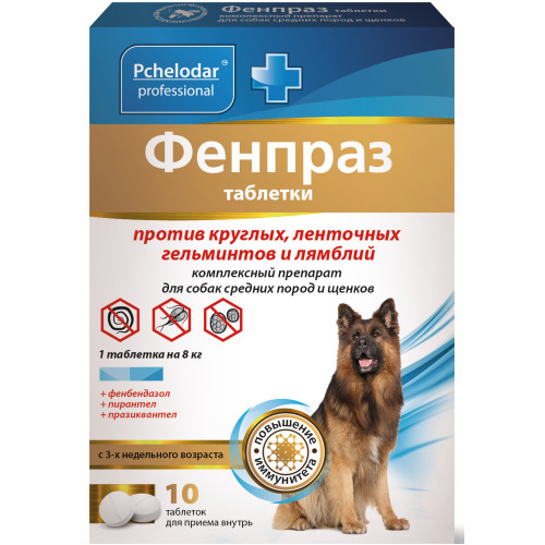 Фенпраз — комплексный антигельминтный препарат с пчелиным маточным молочком, который обладает широким спектром действия и уничтожает круглых и ленточных гельминтов на всех стадиях их развития. Активные компоненты препарата Фенпраз помогают мягко и безопасно избавить организм животного от гельминтов и продуктов их жизнедеятельности. Натуральное маточное молочко, содержащее в своем составе витамины, минеральные вещества, аминокислоты и ферменты, способствует быстрому восстановлению организма, снятию интоксикации, поддержанию функции желудочно-кишечного тракта и печени, повышению иммунного статуса и нормализации обмена веществ. А также помогает предотвратить побочные явления и осложнения, возникающие при гибели паразитов в организме, что особенно важно для молодых (щенки и котята), пожилых, беременных, больных и ослабленных животных.