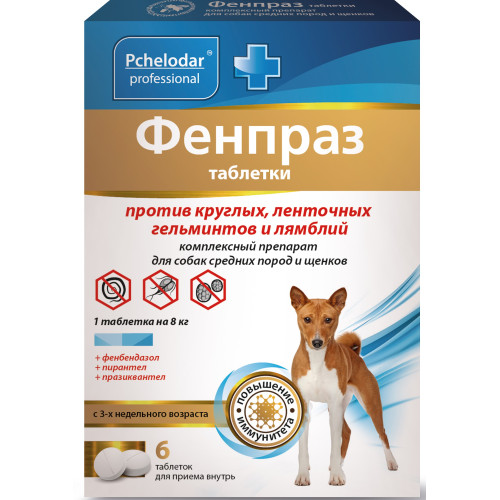 Фенпраз для ср.собак против круг. и ленточн. гельм-в, 6таб (1таб. на 8кг) *50