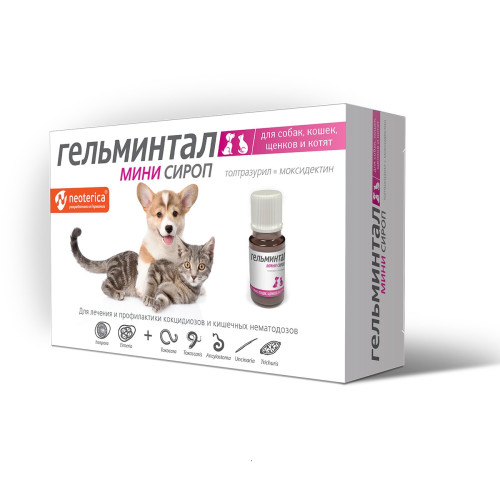 Гельминтал сироп для щенков котят 10мл (0,5мл на 1кг)*35
