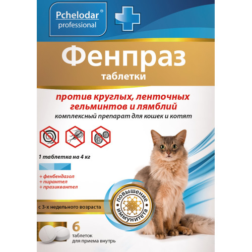 Фенпраз — комплексный антигельминтный препарат с пчелиным маточным молочком, который обладает широким спектром действия и уничтожает круглых и ленточных гельминтов на всех стадиях их развития. Активные компоненты препарата Фенпраз помогают мягко и безопасно избавить организм животного от гельминтов и продуктов их жизнедеятельности. Натуральное маточное молочко, содержащее в своем составе витамины, минеральные вещества, аминокислоты и ферменты, способствует быстрому восстановлению организма, снятию интоксикации, поддержанию функции желудочно-кишечного тракта и печени, повышению иммунного статуса и нормализации обмена веществ. А также помогает предотвратить побочные явления и осложнения, возникающие при гибели паразитов в организме, что особенно важно для молодых (щенки и котята), пожилых, беременных, больных и ослабленных животных.