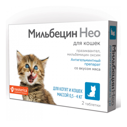 Мильбецин Нео таблетки антигельминтные для котят и кошек 0,5-4кг 2таб (1таблетка/ 1-2кг)