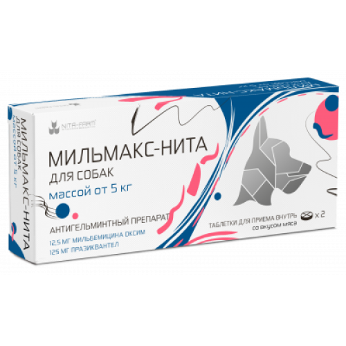 Мильмакс-Нита для собак от 5 кг: 12,5 мг мильбемицина оксим, 125 мг празиквантел