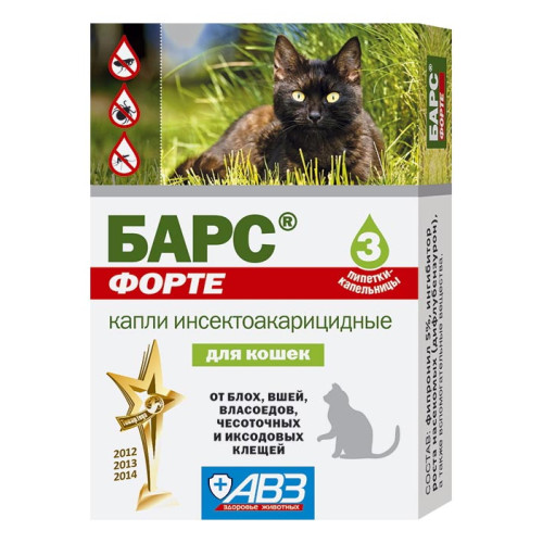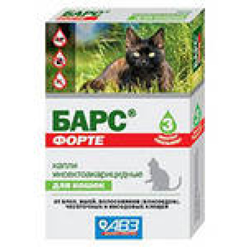 Барс форте капли для кошек инсектицидные 3 пипетки