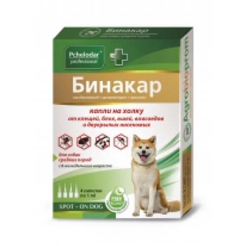 Бинакар Капли на холку для собак средних пород/1мл уп. 4 пипетки*50 (на 10кг)