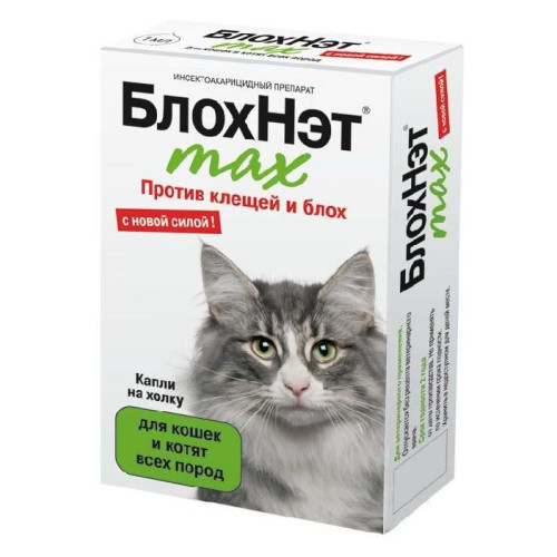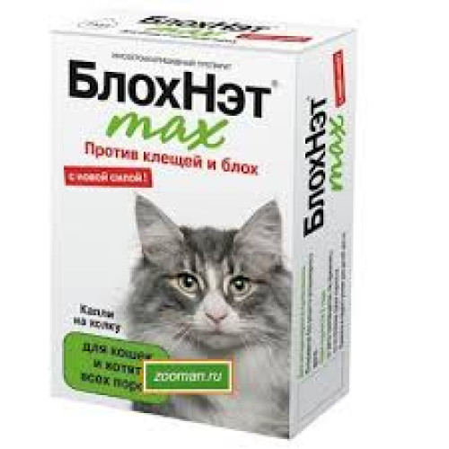 Инсекто-акарицидные капли БлохНэт оказывают губительное действие на личинок и половозрелых клещей семейства Ixodidae, клещей Sarcoptes canis, Otodectes cynotis, Notoedres cati и насекомыхLinognathus setosus, Trichodectes canis, Ctenocephalides canis и Ctenocephalides felis. Препарат обладает репеллентными свойствами в отношении кровососущих насекомых (гнуса) из семейства Culicidae. Высокая терапевтическая эффективность капель обусловлена наличием в их составе комплекса соединений, оказывающих инсекто-акарицидное действие, которое выражается в том, что фипронил блокирует ГАМК-зависимые рецепторы паразита и нарушает нервно-мышечную передачу, что приводит к параличу и гибели последнего, в свою очередь бензилбензоат кумулируется в теле паразита в токсических для него концентрациях, а диметилфталат, оставаясь на поверхности кожно-волосяного покрова обработанного животного, оказывает отпугивающее (репеллентное) действие. Капли БлохНэт по степени воздействия на организм теплокровных животных относятся к умеренно опасным веществам и в рекомендуемых дозах не оказывают местнораздражающего, резорбтивно-токсического и сенсибилизирующего действия.