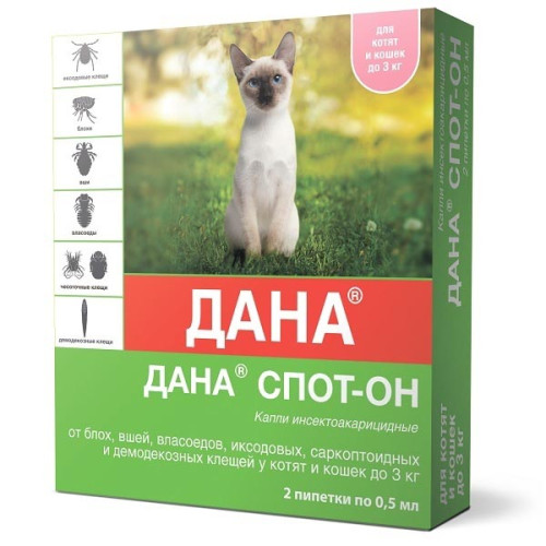 Дана Спот-он капли для кошек и котят до 3кг 2 пипетки *40