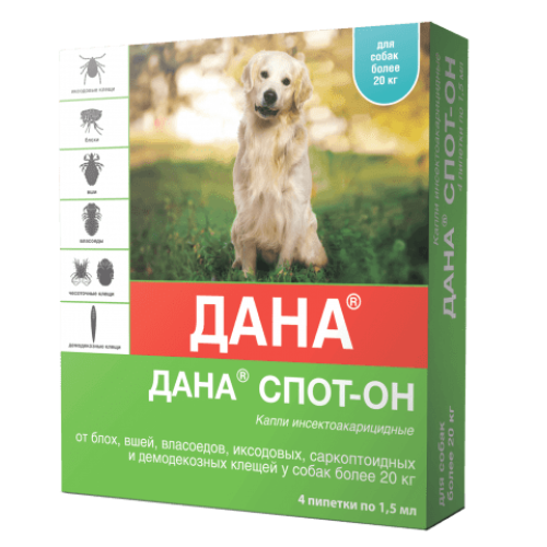 Дана Спот-он капли для собак более 20кг 4 пипетки *10