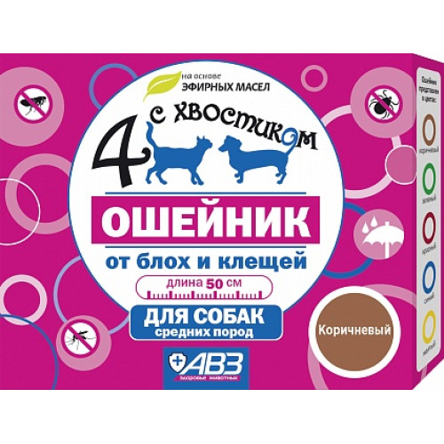 Четыре с хвостиком ошейникдля собак средних пород от блох, клещей, вшей, власоедов, комаров 50см
