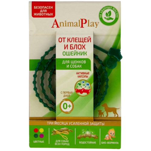 Энимал плей/Animal ошейник для ухода за шерстью и отпугивания насекомых для собак и щенков 75см*24