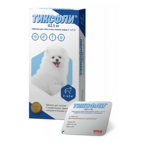 Тиксфли для собак от клещей и блох 2-4,5 кг 112,5мг