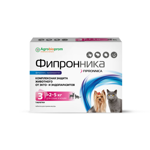 Фипронника для собак и кошек 2-5 кг от клещей и блох 3таб (фипронил, празиквантел)