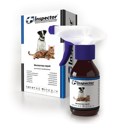 Инспектор спрей применяют собакам и щенкам, кошкам и котятам старше 7-недельного возраста для лечения и профилактики энтомозов (блохи, вши, власоеды), акарозов (вызываемых иксодовыми клещами, демодекоза, отодектоза, саркоптоза, нотоэдроза), кишечных нематодозов (токсокароза, токсаскаридоза, унцинариоза, анкилостомоза, трихоцефалеза), а также в целях профилактики дирофиляриоза.