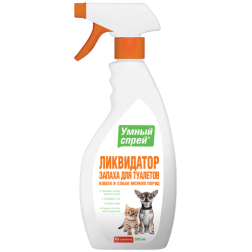 Умный Спрей ликвидатор запаха для туалета кошек и собак декоративных пород — средство для нейтрализации неприятных запахов и дезинфекции туалетов кошек и собак декоративных пород. Помогает устранить причину неприятного запаха, предотвратить появление отложений на дне туалета. Средство продлевает срок службы наполнителя в несколько раз!