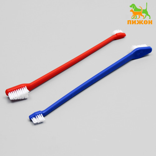 Зубная щетка двухсторонняя набор 2шт красная и синяя Пижон