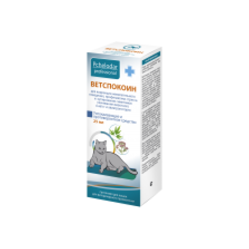 Фармакотерапевтическая группа: комбинированное седативное лекарственное средство. Активные действующие вещества препарата ВетСпокоин обладают мягким седативным, спазмолитическим, анксиолитическим (ослабляющим чувство страха), стрессопротекторным, адаптогенным и болеутоляющим действием. Антиоксиданты, входящие в состав препарата, предупреждают развитие стресса и укрепляют иммунную систему. Фенибут облегчает ГАМК-опосредованную передачу нервных импульсов в ЦНС, оказывает транквилизирующее, психостимулирующее, антиагрегантное и антиоксидантное действие. Улучшает функциональное состояние мозга за счет нормализации метаболизма тканей и влияния на мозговое кровообращение. Способствует снижению или исчезновению чувства тревоги, напряженности, беспокойства и страха, нормализует сон, оказывает некоторое противосудорожное действие. Прометазин является антигистаминным, седативным, противорвотным, противозудным, снотворным и местноанестезирующим средством. Угнетает ЦНС, оказывает седативное, анксиолитическое, антипсихотическое и снотворное действие. Уменьшает возбудимость вестибулярных рецепторов, угнетает функцию лабиринта, устраняет головокружение. Противорвотный эффект обусловлен блокадой рецепторов хеморецепторной зоны продолговатого мозга. Экстракт пустырника – средство растительного происхождения. Оказывает седативное, успокаивающее, гипотензивное и кардиотоническое действие, это обусловлено свойствами биологически активных веществ, содержащихся в растении пустырника (в т.ч. гликозидов, алкалоидов, флавоноидов, сапонинов). Экстракт валерианы оказывает спазмолитическое и седативное действие, уменьшает возбудимость ЦНС, снижает тонус гладких мышц. Комплекс биологических активных веществ валерианы воздействует через нейрогуморальные механизмы и влияет на проводящую систему миокарда, а также регулирует сердечно-сосудистую деятельность, замедляя ритм сердца и незначительно расширяя коронарные сосуды. Пчелиное маточное молочко оказывает адаптогенное, кардиопротекторное, иммуностимулирующее действие, а также улучшает состояние центральной и периферической нервной системы, повышает усвоение глюкозы и кислорода головным мозгом. ВетСпокоин хорошо всасывается в желудочно-кишечном тракте, поступает в центральную нервную систему, затем разлагается в печени и выводится с мочой и калом. ВетСпокоин по степени воздействия на организм теплокровных животных относится к малоопасным веществам (4 класс опасности по ГОСТ 12.1.007-76). В рекомендуемых дозах не оказывает резорбтивно-токсического, кумулятивного, эмбриотоксического, тератогенного и аллергизирующего действия.