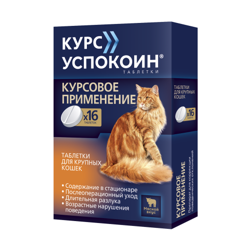 Курс Успокоин таблетки для крупных кошек с мясным вкусом 16таб 123мг*20