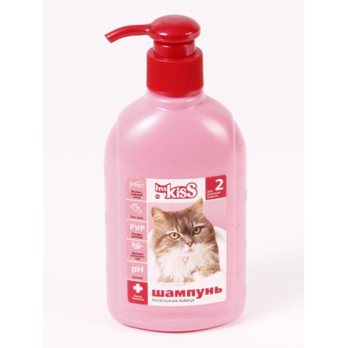 Ms.Kiss Шампунь-кондиционер для длинношерстных кошек "Роскошная львица" 200 мл. специально разработан для ухода за длинношерстными породами кошек швейцарской лабораторией «Swiss Laboratory Defence». Уникальные формулы шампуней созданы с учетом особенностей всех типов шерсти кошек и включают косметические компоненты на натуральной основе. Рекомендуется для длинношерстных пород кошек: персидской,турецкая ангора, мейн кун, невская маскарадная и др. - Ланолин кондиционирует шерсть и оказывает антистатистическое действие; - Кератин придает эластичность и блеск длинной шерсти; - Биотин снимает зуд, раздражение, шелушение кожи и укрепляет корни волос; - Соответствует pH кожи кошки; - Не раздражает слизистую оболочку глаз; - Не содержит искусственных красителей и консервантов; - Хорошо и быстро смывается с шерсти кошки.