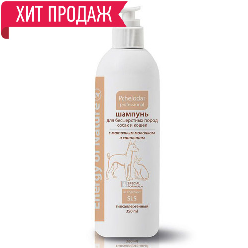 Пчелодар шампунь гигиенический для бесшерстных пород собак и кошекСпециально разработанный нежный ша..