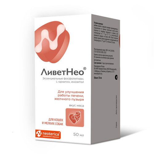 Ливет Нео для кошек и собак мелких пород вкус мясо (для печени и желчного пузыря) 50мл*20