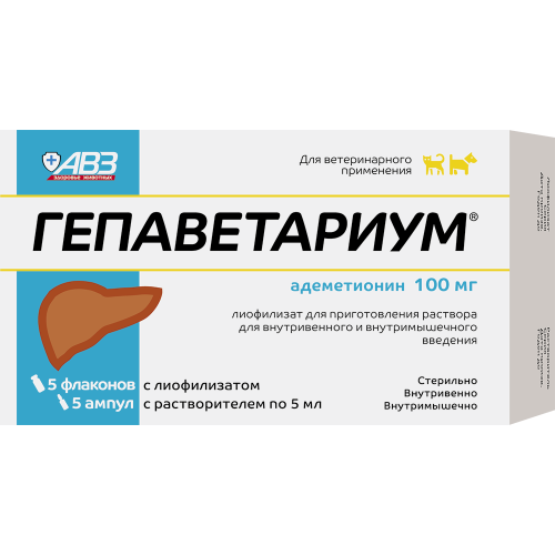 Гепаветариум 100мг /1уп-5фл/ препарат для лечения заболеваний печени у собак и кошек