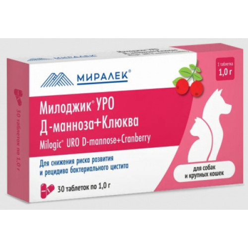Милоджик Уро с Д-манноза и клюквой1 гр для сниж. риска и рецидива бак.цистита для собак и круп.кошек 30т