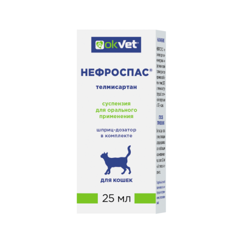 НЕФРОСПАС® назначают для снижения уровня нефротоксической протеинурии при хронической болезни почек (ХБП) и лечения сопутствующей системной гипертензии и ХБП у кошек.