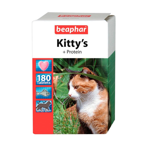 Беафар витамины для кошек Kitty's сердечки с добавлением рыбы протеин 180 таб.*12