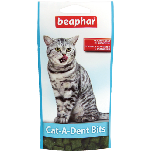 Beaphar Cat-a-dent bits - подушечки с хлорофиллом для поддержания чистоты и здоровья зубов у кошек, укрепляют эмаль и противостоят ее разрушению, механически удаляют налет с зубов и полируют эмаль, освежают дыхание. Имеют прекрасный вкус.
