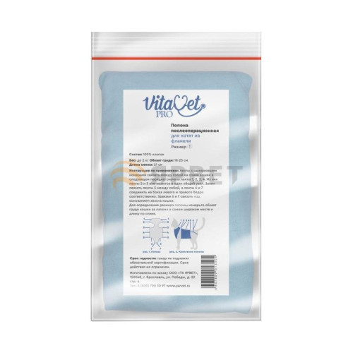 Попона послеоперационная для котят №1 (обхват груди 18-23см, до 2кг) фланелевая Vita Vet Pro