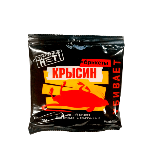 Отравленная приманка для крыс и мышей «Крысин» в виде мягких брикетов на тестовой основе. Производится в полиэтиленовых пакетах весом 200 грамм. Предназначается для борьбы с грызунами в закрытых помещениях. В качестве основного ядовитого компонента здесь применён бродифакум (с процентным содержанием 0,005 %). Кроме этого в своёмсоставе имеет специальные вкусовые добавки, которые нравятся грызунам.
