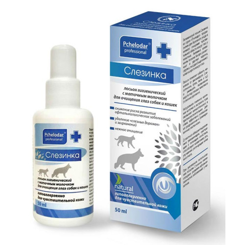 Гигиенический лосьон «Слезинка» содержит в своем составе натуральное пчелиное маточное молочко. Лосьон нежно и мягко очищает глаза животных, обладает антибактериальным и противогрибковым действием, угнетая размножение микроорганизмов и грибков.