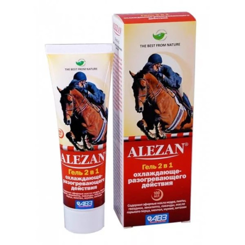 Гель Alezan 2 в 1 применяется при миозитах, серозных лимфонодулитах, тендинитах и тендовагинитах, при невритах, радикулитах, плекситах, серознофиброзных синовитах, при ушибах, растяжениях, вывихах суставов и гематомах, а также для профилактики хронических обострений заболеваний мышц и сухожилий. Гель содержит эфирные масла кедра, пихты, гвоздики, эвкалипта, розмарина, лаванды, 6 лекарственных трав, масло горького перца, ментол натуральный и мумиё.