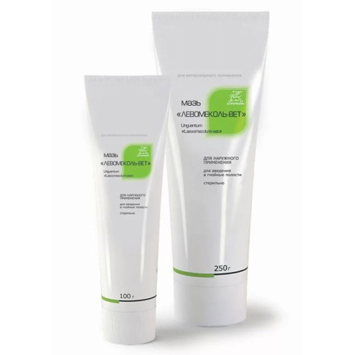 Мазь Левомеколь — комплексный препарат с антибактериальным и ранозаживляющим действием. Назначают всем видам животных при гнойных ранах, инфицированных смешанной микрофлорой (включая стафилококки, синегнойную и кишечную палочки), для очищения ран от гнойно-некротических масс, для уменьшения отека и восстановления разрушенных тканей. Мазь Левомеколь можно применять и при других гнойно-воспалительных процессах, например при тяжелых формах острого воспаления анальных желез у собак при лечении фурункулов и инфекционных отитов.
