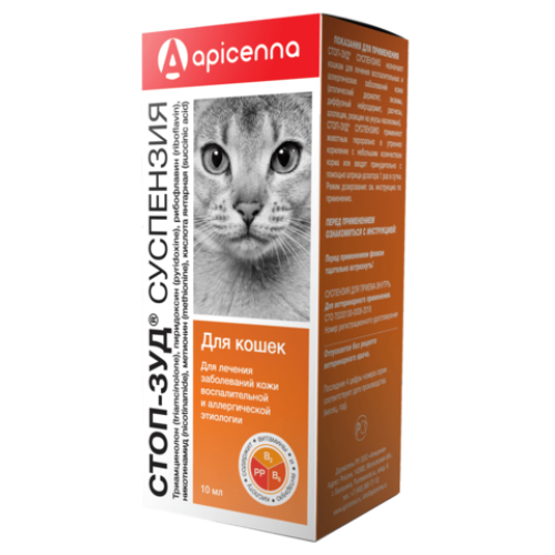 Стоп-зуд суспензия для кошек 10мл (леч.воспалит.аллергич.заболев.кожи и отитов)*10