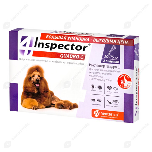 Инспектор Quadro на холку для собак 10-25кг (в уп. 3пип.) от блох, клещей, нематод, дироф.