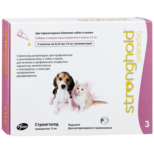 Стронгхолд для кошек и собак упаковка 3 пипетеки по:Для котят и щенков — 0,25 мл (15 мг)Для собак от..