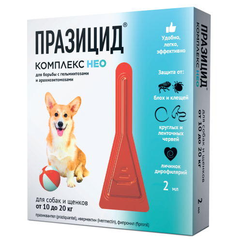 Празицид-комплекс НЕО для собак и щенков 10-20кг(1 пип*2 мл)(от блох,клещей,вшей,влас,гельминтов)*10