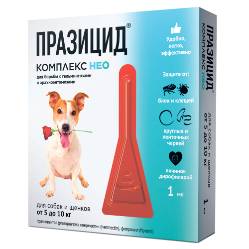 Празицид-комплекс НЕО для собак и щенков 5 -10кг(1пип/1 мл)(от блох,клещей,вшей,влас,гельминтов)*10