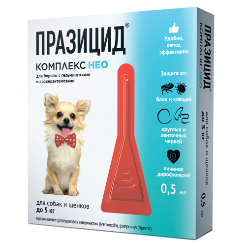 Празицид-комплекс НЕО для собак и щенков до 5кг(1пип/0,5 мл)(от блох,клещей,вшей,влас,гельминтов)*10