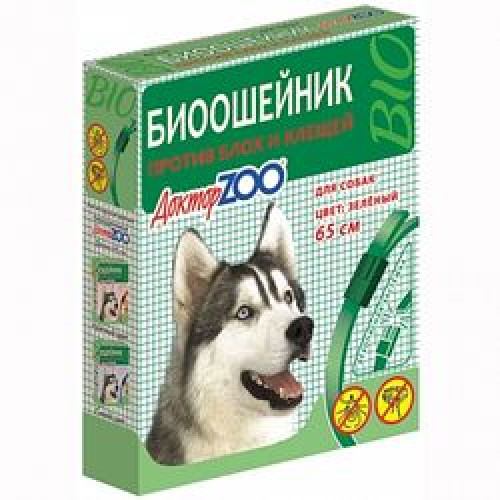 Доктор Зоо ошейник БИО для собак от блох, клещей, вшей, власоедов (зеленый) 65см*6