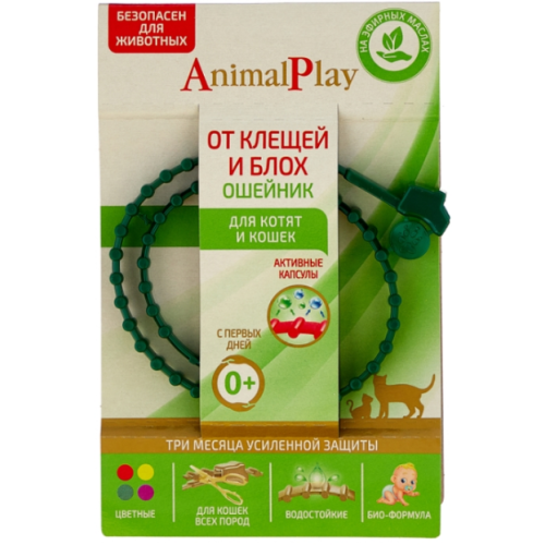Энимал плей/Animal ошейник для ухода за шерстью и отпугивания насекомых для кошек и котят 38см*24