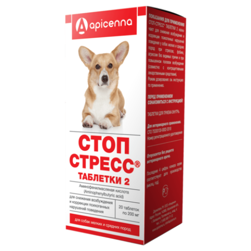Стоп-Стресс для собак средних и мелких пород до 30кг 20таб.*10