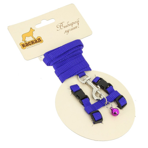 Комплект для грызунов Шлейка 20-30см+поводок 120см нейлон синий Каскад